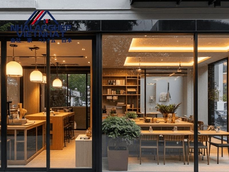 Nhà lắp ghép khung thép kết hợp kính cường lực – Hiện đại, thoáng sáng, bền vững
